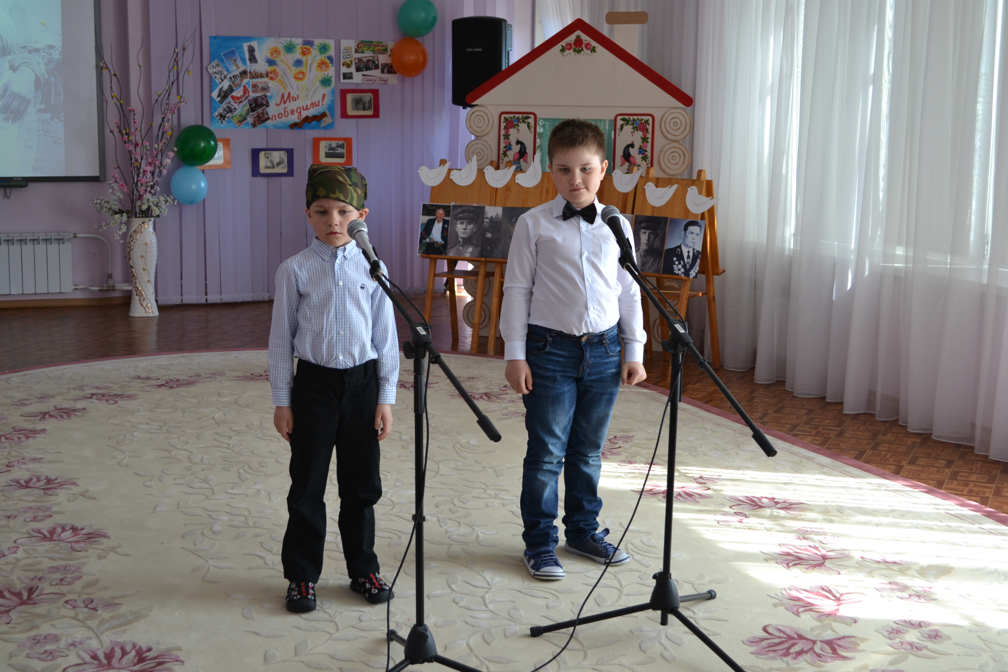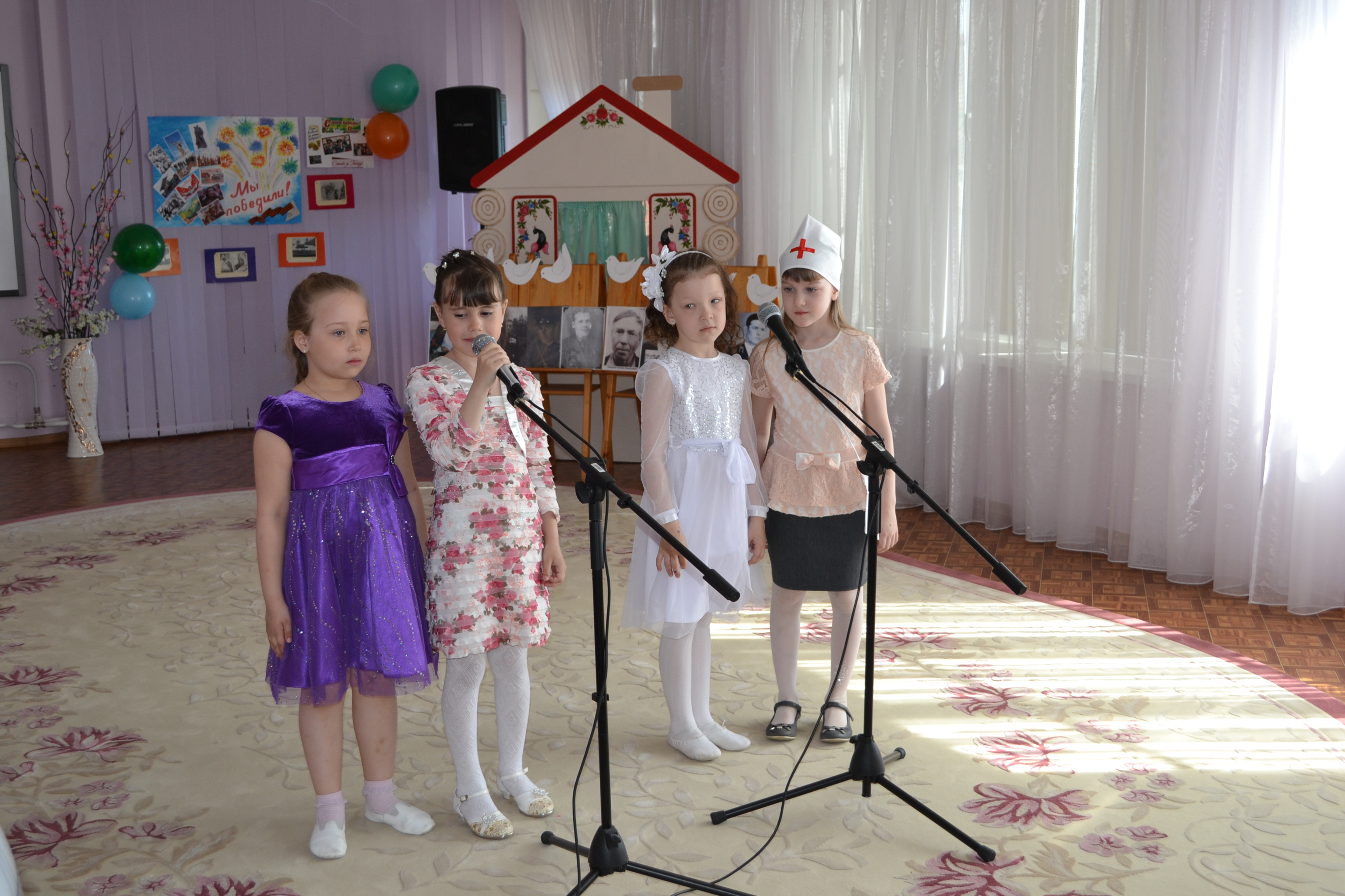 На торжественном празднике звучали стихи и песни военных лет,дети показали трогательный танец ,под песню Вадима Егорова "Панамки".