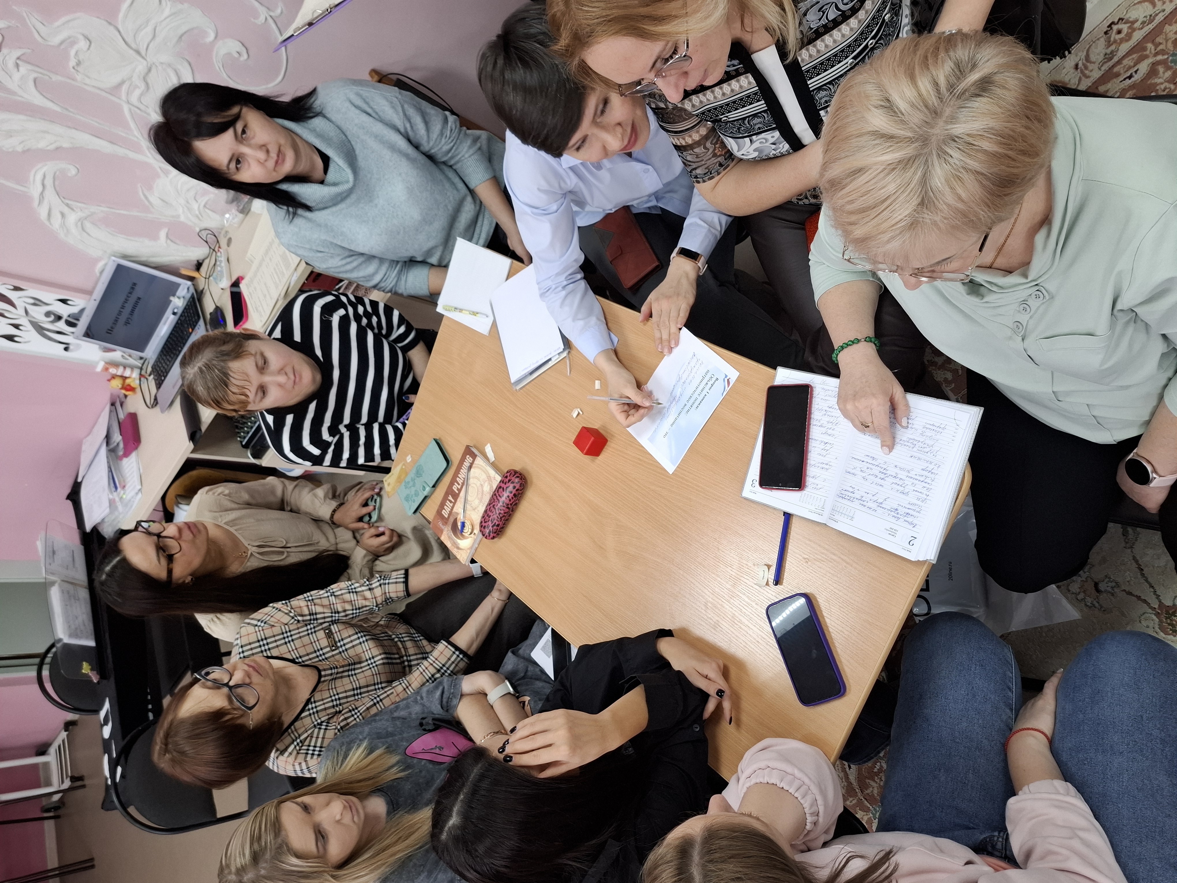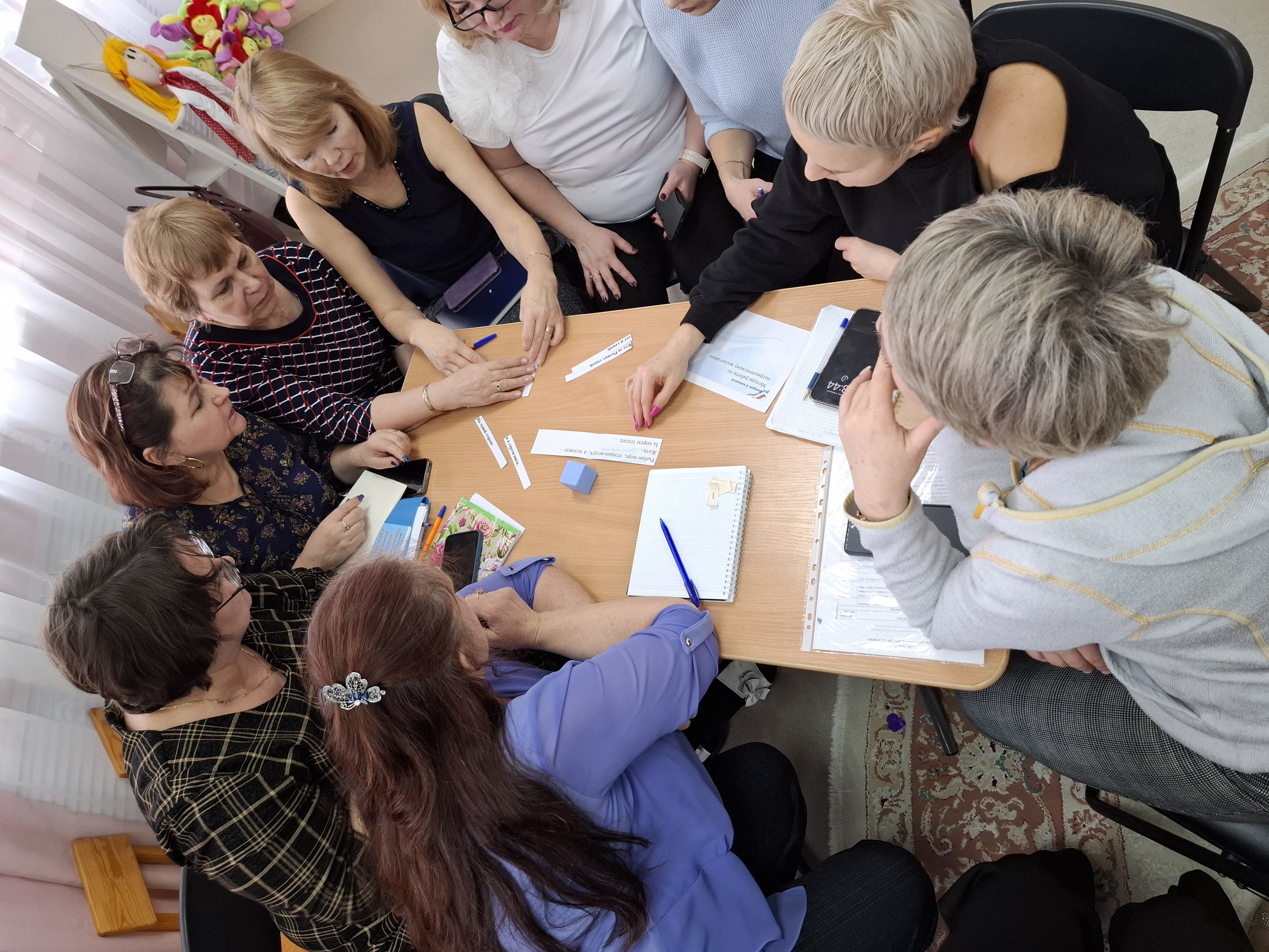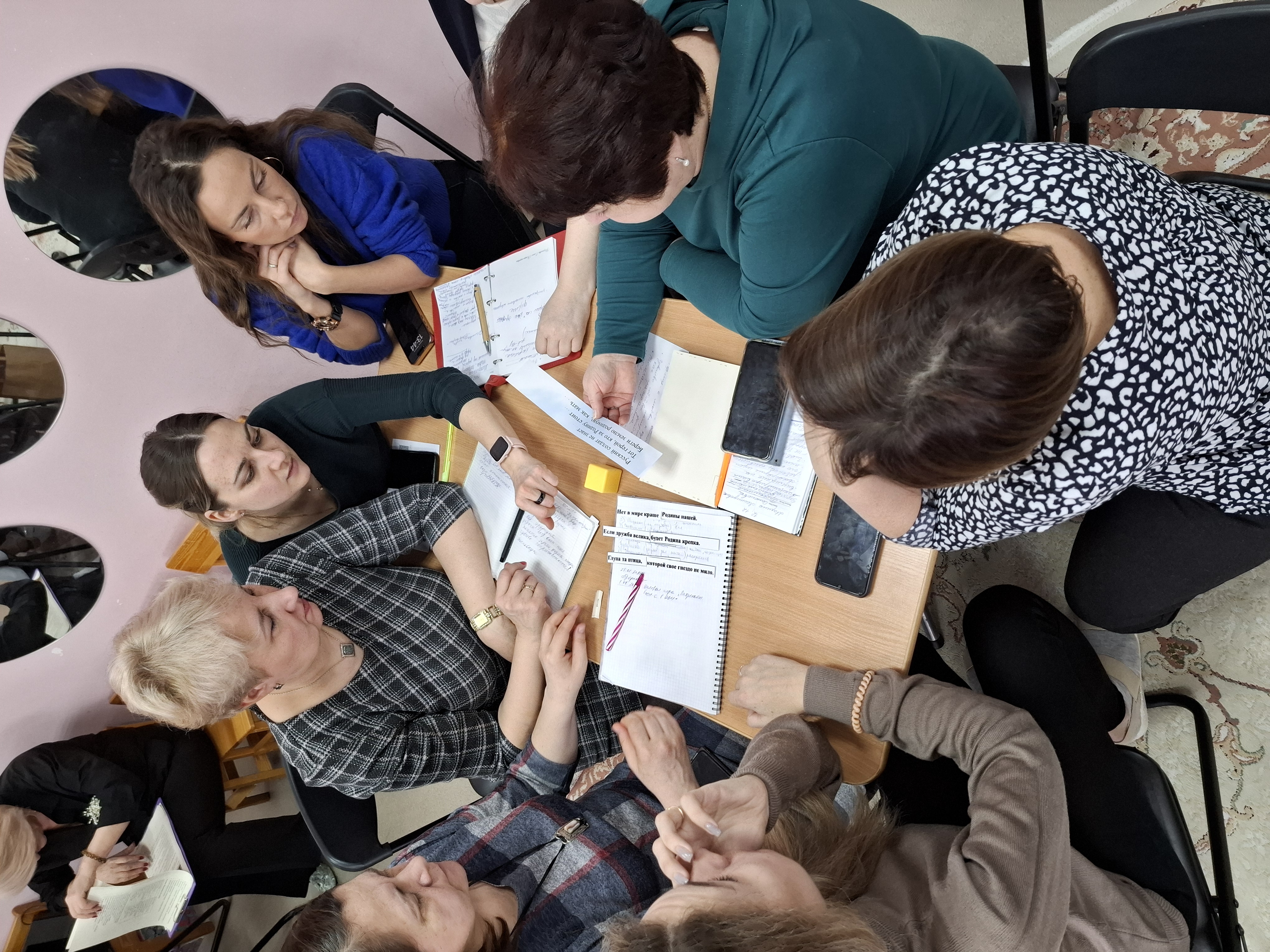В соответствии с годовыми задачами МАДОУ, с целью уточнения и закрепления знаний педагогов по патриотическому воспитанию дошкольников была проведена деловая игра "Патриотическое воспитание в ДОУ". Перед началом игры была сделана жеребьевка, педагоги разделились на 4 команды. Во время блиц-опроса педагоги ответили на ряд вопросов по данной теме и вспомнили такие понятия, как: Родина, страна, традиции, государство и др. На этапе "Педагогическая интуиция" - педагогам предстояло объяснить понятие Патриотическое воспитание, перечислить основные задачи, формы и методы работы по патриотическому воспитанию. Затем каждая из команд выполнила задания и составила пословицы из нескольких частей, разгадала ребусы. В ходе работы педагоги узнали о нейросети "Шедеврум" и ее использовании в работе.