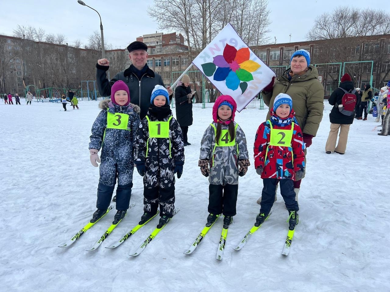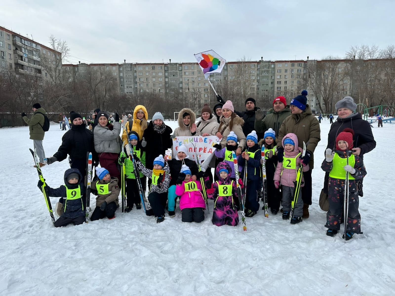 С большой радостью ПОЗДРАВЛЯЕМ команду "СЕМИЦВЕТИК" (руководитель команды Наталья Викторовна) с победой в районном этапе соревнований "Лыжные гонки"!