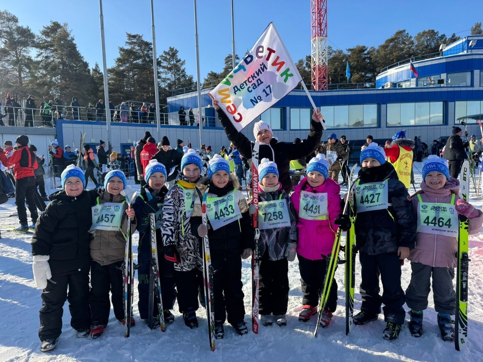 Среди них были и наши две команды. Команда «Семицветик» под руководством Натальи Викторовны блестяще продемонстрировала свою быстроту в детском забеге на 100 метров. Особую радость всем принесло вручение приза как самой юной лыжнице Калининского района — нашей трёхлетней Риане!