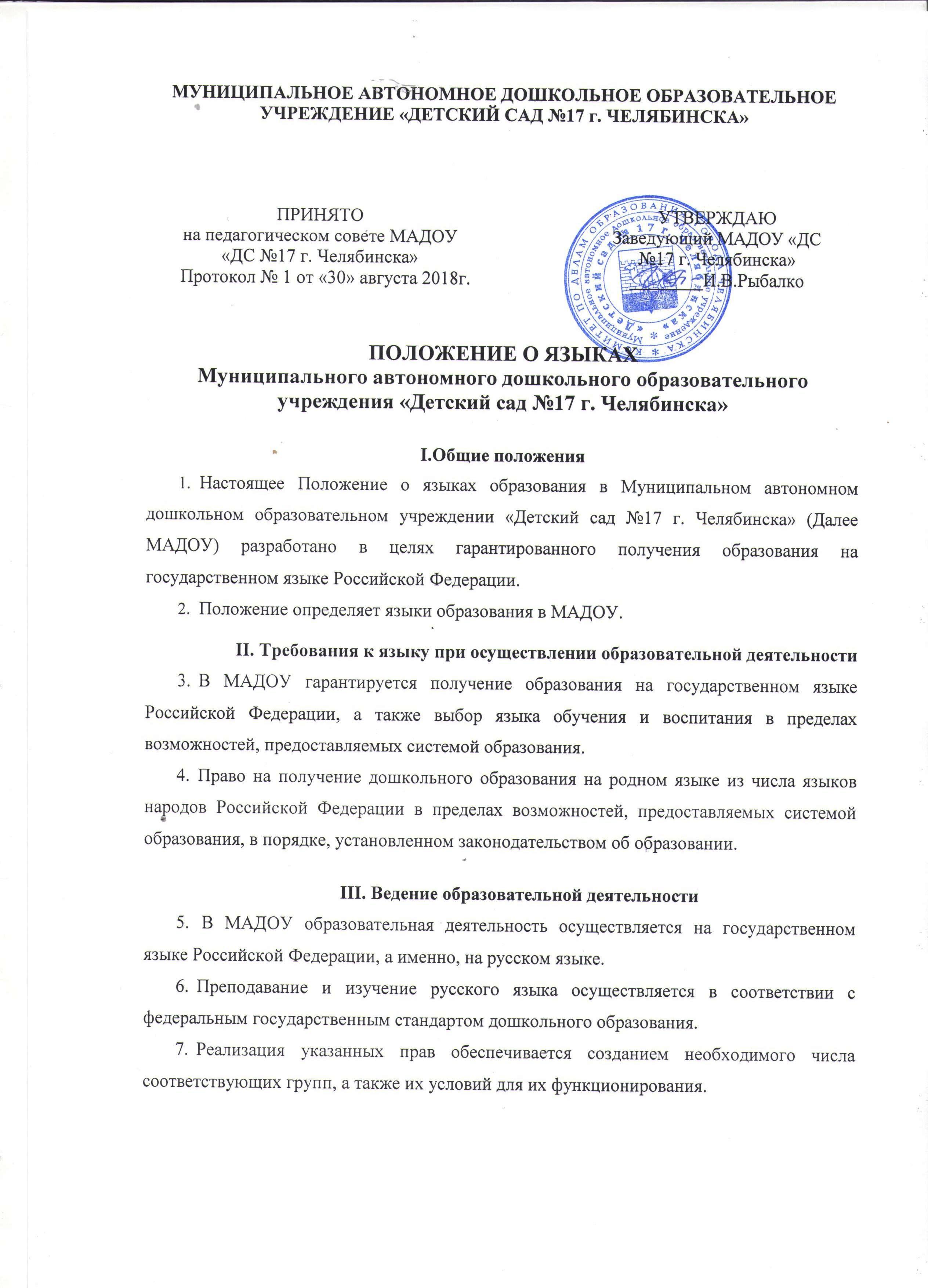 Положение о языке (языках) МАДОУ "ДС №17 г. Челябинска"
